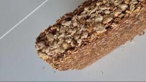 (100% circulaire- of bio toepassingen voor isolerende mortels) Greenager + laat weten dat de testen op laboniveau met als binder (bio)polymeer en/of (bio)lijm succesvol zijn